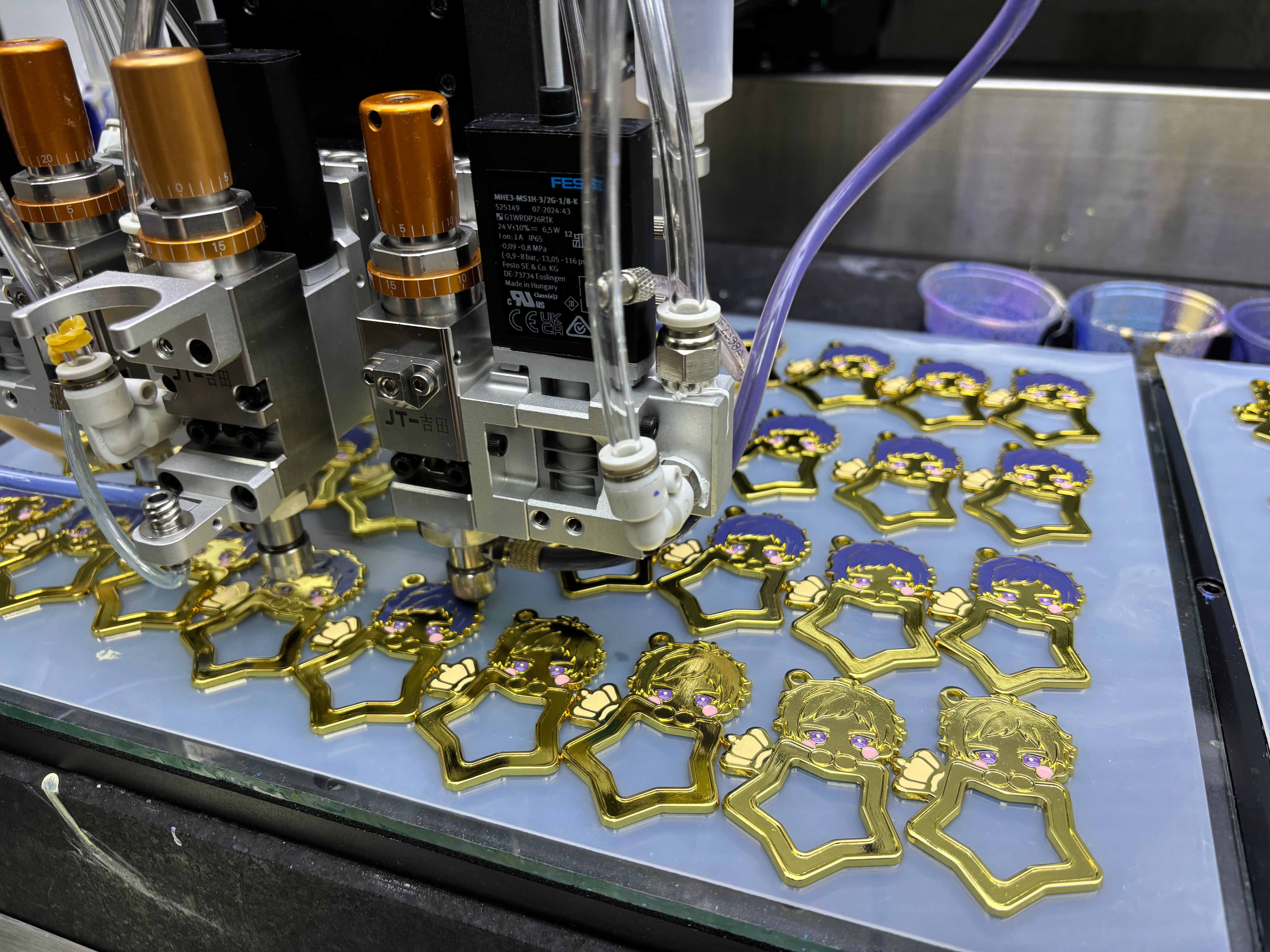 Our main product processes include: paint, imitation enamel (soft enamel), drip glue (poly), printing (screen printing/offset), frosted sandblasting, alloy oil filling, laser laser, etc.;